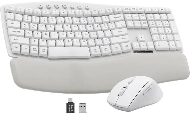 Ideal for personal desks or large-scale office procurementshowcasing your commitment to quality and detail. ^^ Ergonomic Mouse with Customizable Control - The raised-left design supports your hand posture and helps prevent carpal tunnel. Three DPI settings adapt to daily tasks or detailed work, Pair it with 7 keyboard shortcuts boost efficiency. ^^ Plug & Play Compatible Across Devices- 1 USB-A/C receiver connects both keyboard and mouse. Works with Windows, macOS, Chrome OS, Linux, Android, and more. Compatible with PCs, laptops, MacBooks, tablets. With stable 33ft wireless range.