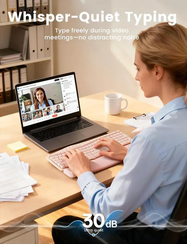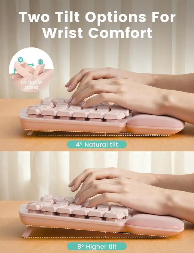 Cloud-Like ComfortDesigned for Long Hours - Sink into our buttery-soft faux lambskin leather palm rest (waterproof & stain-resistant! ) paired with ergonomic wave keys that hug your fingertips. Reduce wrist strain by 40%* and type 8+ hours fatigue-free. ^^ Modern, Professional Design - Featuring a matte finish, sculpted curves, and clean lines, plus a spill-resistant build that safeguards against accidents. Ideal for personal desks or large-scale office procurementshowcasing your commitment to quality and detail. Backed by a 30-day return policy and 1-year free replacement, for complete peace of mind.