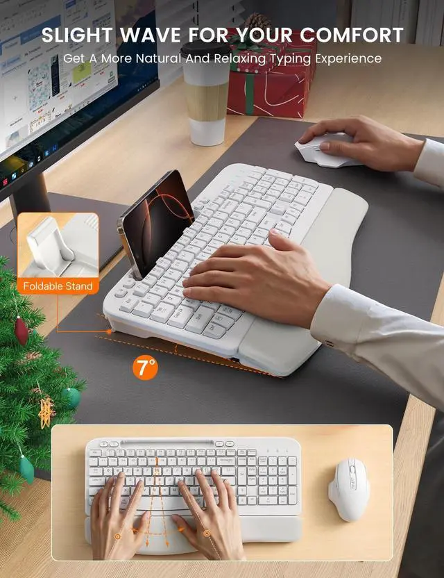 Keyboard and MElevate Your Typing Experience with the New Wireless Keyboard and MouseDiscover the perfect blend of comfort and functionality with our latest ergo wireless keyboard and mouse combo. Designed for those who spend long hours at their desks, this duo brings together advanced features to enhance your productivity and comfort.
