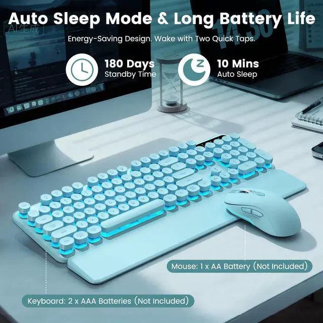 Speed: 600/1000/12004. Energy-saving design, longer battery lifeThe wireless keyboard and mouse automatically sleep after 30 minutes of inactivity to extend battery life.