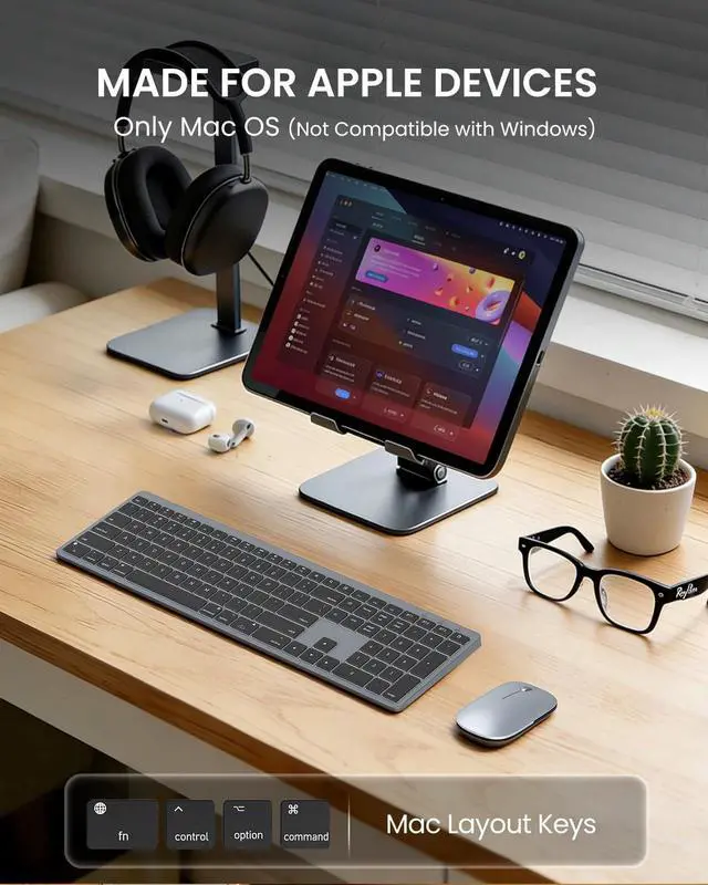 Mac: Designed exclusively for Apple. This keyboard features the full standard Mac layout and all the macOS shortcut keys you rely on for a seamless workflow. Enjoy instant compatibility with your MacBook Pro/Air, iMac, Mac Mini, iPad, and iPhone (Bluetooth