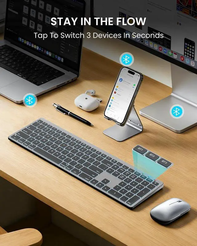 Devices Instantly: Control your entire Apple ecosystem. Pair up to 3 Bluetooth devices at once and switch between your Mac, iPad, and iPhone with a single, decisive keypress. It's the ideal setup for creators and professionals who multitask ^^ Ergonomic Tilt for