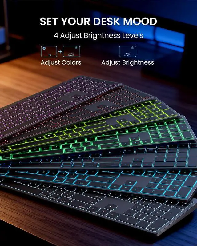 Any Environment: Illuminate your desk with 7 vibrant colors and 3 adjustable brightness levels. The evenly-lit keys provide perfect visibility in any light, helping you type accurately while reducing eye strain during late-night work sessions ^^ Switch Between 3