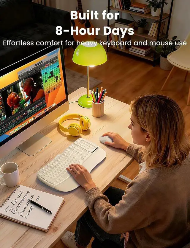 (Peace of mind: 30-day return + 1-year replacement. ) ^^ Ergonomics Designed Sit or standnew adjustable front/back stands support healthy wrist posture. Wave keys deliver smoother, more comfortable typing, so you can type for 8 hours without fatigue. Perfect for pros, home offices, and daily work ^^ Backlit Style Sleek, refined lines and backlighting bring both style and focus to your workspace. Choose soft tones (blue, cyan, white) for calm productivity or bold colors (red, green, purple, yellow) to match your moodone for every day of the week. ^^ RGB Mouse 700mAh battery, auto sleep mode, 6 buttons, and 3 DPI levels (800/1200/1600). Tired of mice with only cycling lights? This one lets you choose 6 fixed colors or 5 cycle modes. Plus, the keyboard has 9 shortcut keys to boost productivity. ^^ Universal Compatibility One 2.4GH z USB receiver (33ft) connects keyboard and mouse. USB-A & C combo works with 99% of devicesPC, laptops, tablets, desktops, Macs. plug and play.