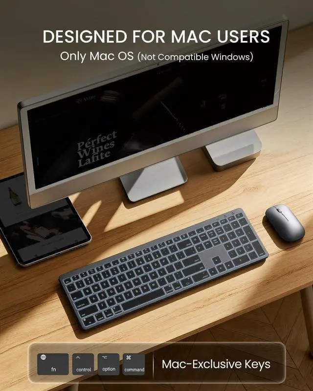 Mac: Designed exclusively for Apple. This keyboard features the full standard Mac layout and all the macOS shortcut keys you rely on for a seamless workflow. Enjoy instant compatibility with your MacBook Pro/Air, iMac, Mac Mini, iPad, and iPhone (Bluetooth