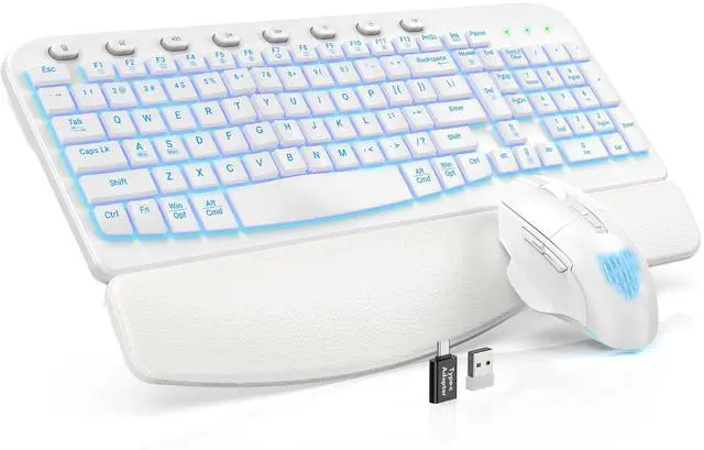 ILLUMINATE YOUR WORKSPACE: The wave ergonomic wireless keyboard features 7 switchable backlights, paired with an RGB mouse that automatically changes colors. Even in the dark, the illuminated keys make typing easy. Adjust the brightness or turn off the lights anytime to save power ^^