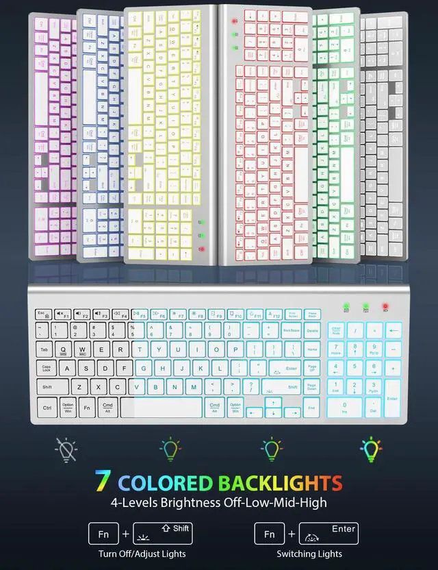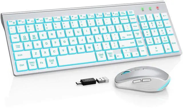 EXPERIENCE THE MAGIC OF COLORS: The wireless keyboard feature a captivating 7-color switchable backlight, and 4 levels of brightness adjustable, while the RGB mouse changes color automatically. Whether it's late-night work or dimly lit environments, the illuminated keys make typing effortless, allowing you to enjoy flexible lighting adjustments according to different moods and atmospheres. ^^