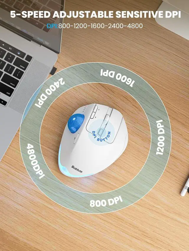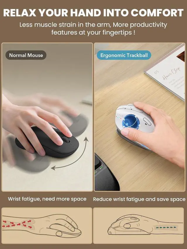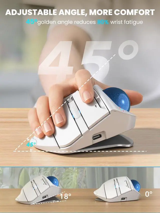 Thumb Trackball Control: Control the cursor smoothly with your thumb instead of moving your arm across the desk, reducing wrist and shoulder fatigue caused by repetitive motion while maintaining precise control, making it ideal for small desks, limited spaces, and long daily use ^^