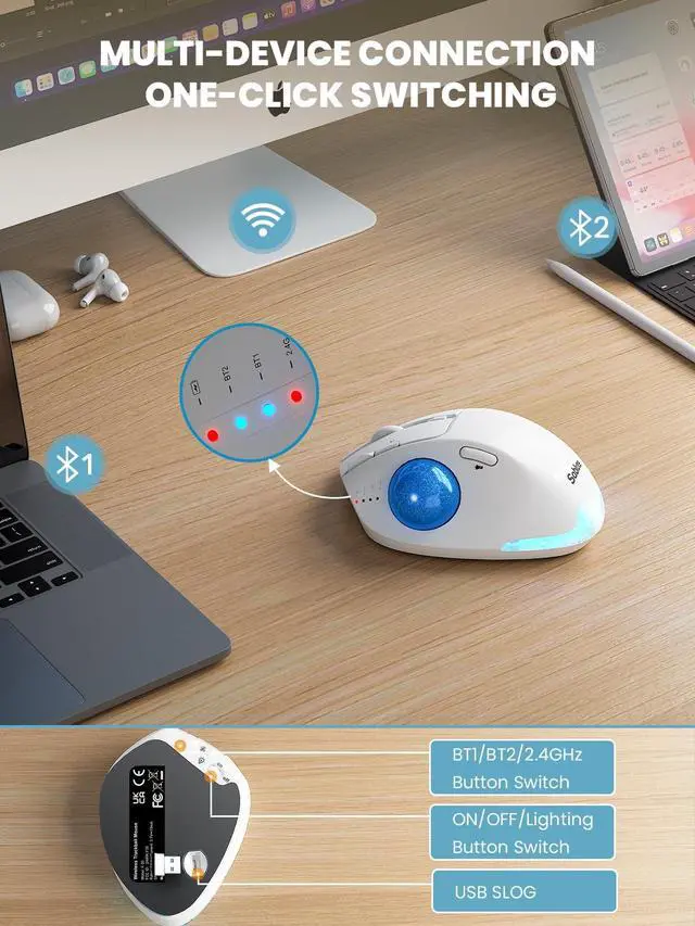 Multi-Device Switching: Connect up to three devices simultaneously via Bluetooth and USB receiver, then switch between your PC, laptop, or iPad with one click, delivering a stable, lag-free connection without repeated pairing and improving efficiency for multi-device workflows ^^
