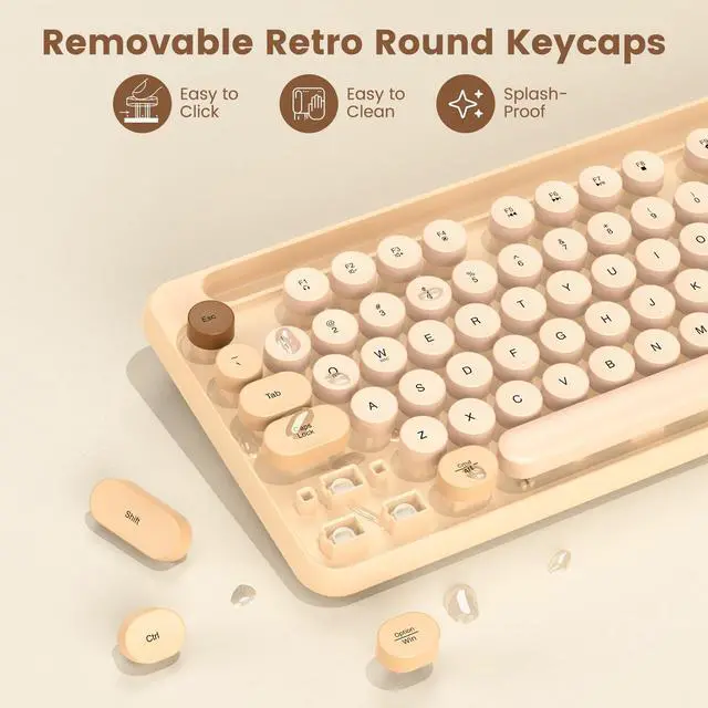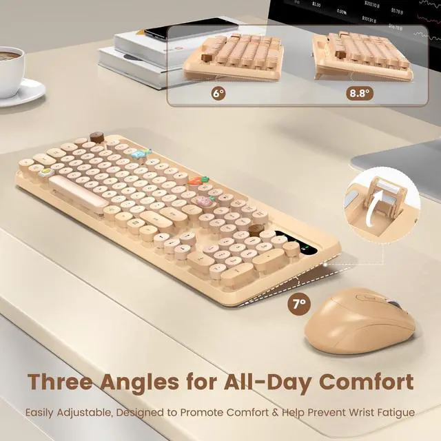 Colorful Typewriter Wireless Keyboard and Mouse Combo - Milk-Tea1. Retro typewriter keyboard, comfortable