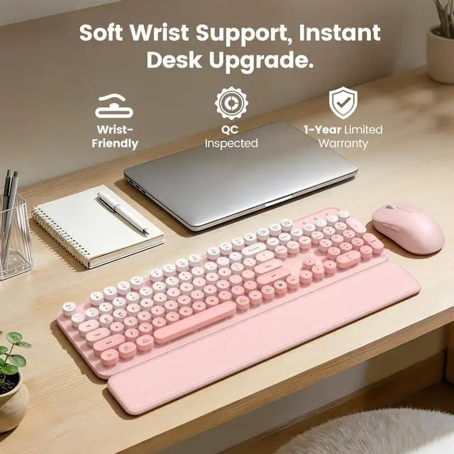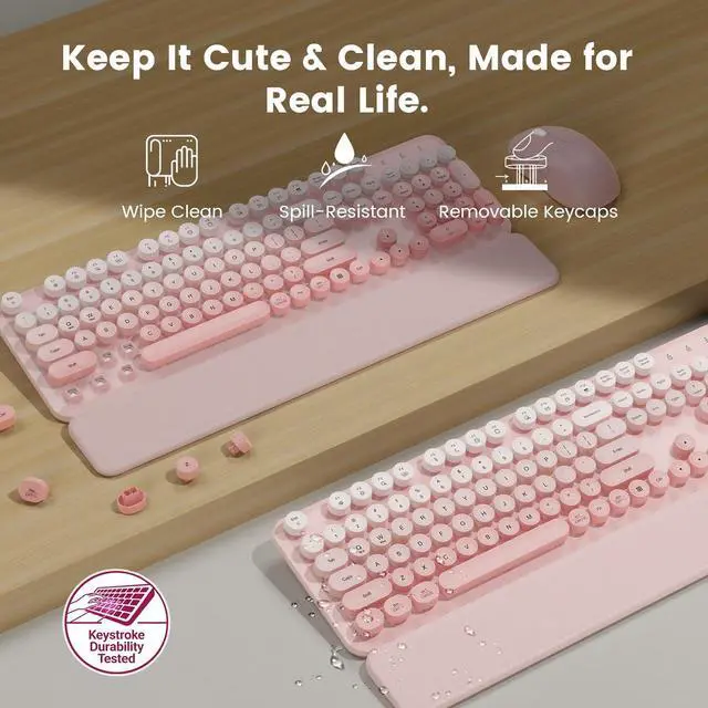 Blush Pink Ombre Finish: With its soft pink gradient and retro design, this keyboard and mouse combo makes a thoughtful gift for friends, coworkers, students, or loved onesnice for back-to-school, holidays, birthdays, or a simple desk refresh.