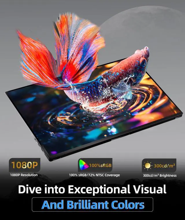 [Large but Portable] The Ingnok Portable Monitor features a large 18.5 -inch 1080p Full HD IPS screen designed to create a wider visual experience. Weighing just 2.51 pounds and measuring 0.33 inches at its thinnest point and 0.61 inches at its thickest, it easily fits in a suitcase for travel, work or play. ^^ [Vivid visuals] Featuring an IPS panel with 100% sRGB color gamut and 8-bit colour depth ( 16.7 million colors), Ingnok Laptop Screen Extender is ideal for professionals who need to achieve exacting color accuracy in their detailed work, ensuring that your creative projects look exactly as expected.