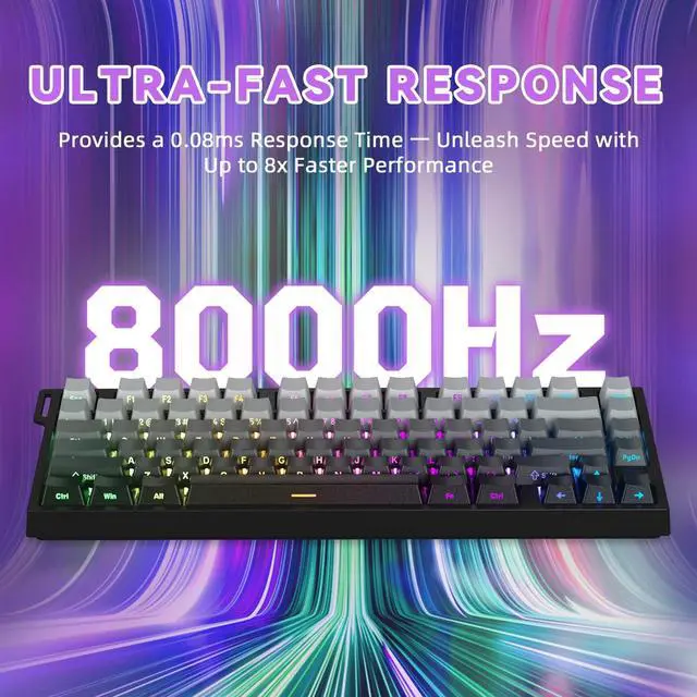 Million Light Up Keyboard: Elevate your environment into a lively gaming sanctuary. The R82 HE adopt a full RGB backlight system with multiple preset lighting mode, can be customizable in terms of color, effects, brightness and speed via cloud software, sync with other gear for a cohesive battle-station, full N-Key Rollover prevents ghosting during clutch moments, perfect for intense games like FPS, RTS, rhythm and MOBA ^^