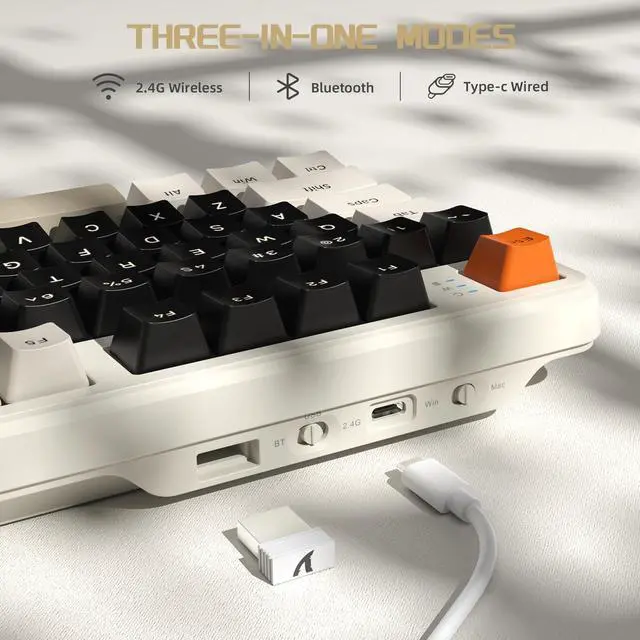 You can adjust the lighting effect, lighting brightness and speed at will through the combination key, or you can use compatible software to freely create your favorite effect. If you don't need the backlight, you can also turn it off. ^^ 4000mAh Battery LifeThe 80% layout keyboard is equipped with a 4000mAh large battery to ensure long-term use without frequent charging, so you can focus on your work or game. It contains a 1.5 -meter TYPE-C data cable with a magnetic ring, and is also equipped with a shaft extraction tool for your convenience. Customization and maintenance. Whether you are a novice or a keyboard enthusiast, X87 can perfectly meet your needs.