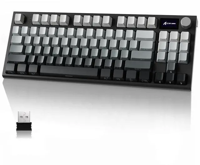 The Bluetooth and 2.4GH z modes allow you to connect to multiple devices, while the USB-C connection ensures a stable and fast connection to your computer. Whether you're a gamer, programmer, the K86 wireless gaming keyboard is the perfect choice for a versatile and personalized typing experience. ^^ 86 Keys ANSI Layout & Double-shot PBT KeycapsLike G915, this compact tkl mechanical keyboard features the popular 75% percent layout, strikes the perfect balance between functionality and compactness. Unlike 60 percent gaming keyboard, it preserves essential keys, while optimizing desk space.