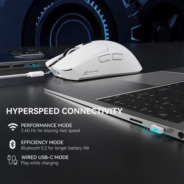 ^^ Tri-ModeTo meet the needs of different scenarios, the X1 wireless mouse supports three different connection modes: wired USB-C mode (1000Hz polling rate), ultra-stable 2.4GH z wireless via nano receiver (1ms response), and Bluetooth mode (3 devices memory). Simply press the button on the back of the mouse to easily switch modes to meet your diverse needs! ^^ 53g Ultra-Light Redefine agility with aerospace-grade construction. Our liquid nitrogen injection molding creates a featherlight 53g frame (30% lighter than standard mice) without compromising durability. The ambidextrous honeycomb shell ensures maximum airflow during marathon sessions, while textured side grips deliver surgical control during flick shots. ^^ 100 Million ClicksBuilt to outlast your gaming career. Our gold-plated mechanical switches undergo MIL-STD lab testing to guarantee 100 million click cycles - 8x industry standard. The optimized 60g actuation force provides crisp tactile feedback with reduced finger fatigue. ^^ Web Cloud DriverCustomized X1 gaming mouse, born for e-sports. Equipped with innovative and intelligent cloud-driven webpage, bid farewell to traditional driver software, no need to download and install. The open-source driver automatically identifies your computer system, and allows for DPI adjustment, rate of return, competitive mode, customized buttons, macro recording, personalized key mapping and other advanced functions.