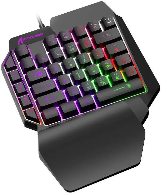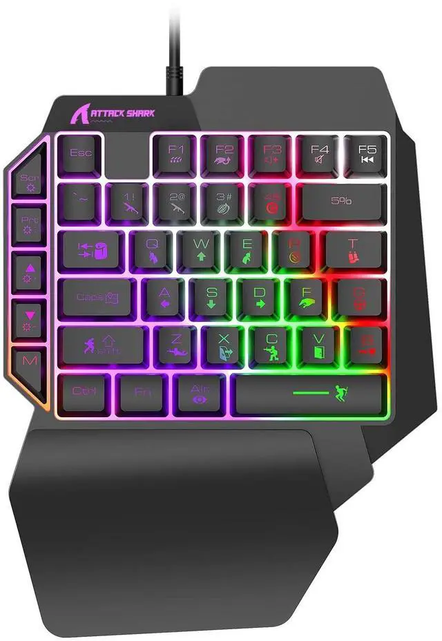 FN+F5: Previous song. ^^ Ergonomic Single Hand Keyboard The one handed gaming keyboard comes with a wrist rest, and the recessed design fits your wrist for comfort. Curved keycaps, stepped layout and crater keys. Gives you a comfortable typing experience and improves the accuracy of keystrokes. ^^ Compatible SystemUSB Connect, Plug & Play, No driver required, Compatible with Windows XP/ VISTA/ WIN 7/ WIN 8/ WIN 10/ Mac OS X / PS4 / Xbox One.