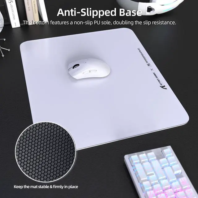 Ultra-Smooth Tempered Glass Surface&Rapid Mouse MovementCrafted with tempered photovoltaic glass, this Attack Shark glass mouse pad offers a silky-smooth surface with low friction, allowing for faster and quieter operations.This material ensures fast and quiet mouse movements for a nearly drag-free, noise-free gaming experience and enhanced gaming immersion. The mouse pad glass minimizes resistance and noise, providing an uninterrupted gaming experi
