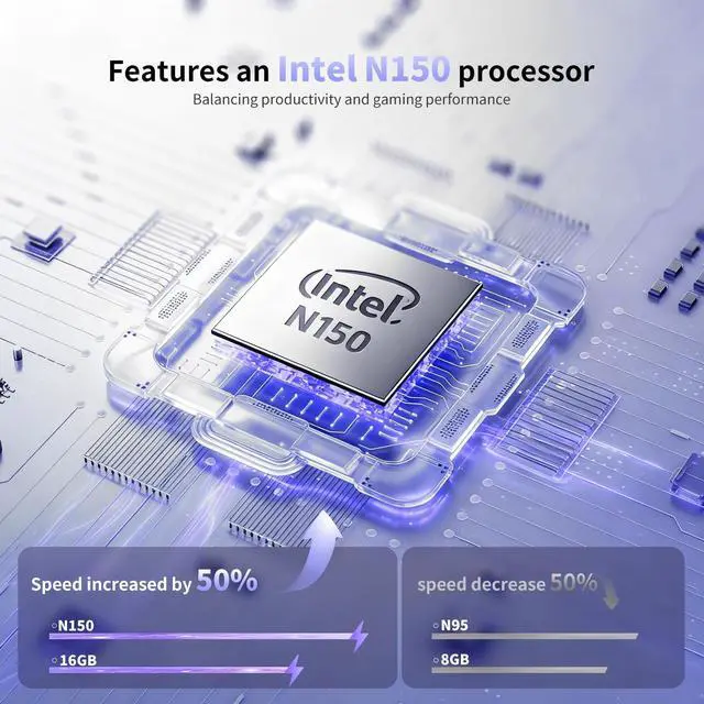• Powerful Performance: Equipped with the latest N150 processor (up to 3.6GHz), 16GB RAM and 1TB SSD. Experience lightning-fast boot-ups, quick file transfers, and seamlessly switch between multiple apps.