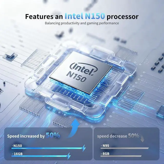 ^^ Powerful Performance: Equipped with the latest N150 processor (up to 3.6GH z), 16GB RAM and 512GB SSD. Experience lightning-fast boot-ups, quick file transfers, and seamlessly switch between multiple apps.