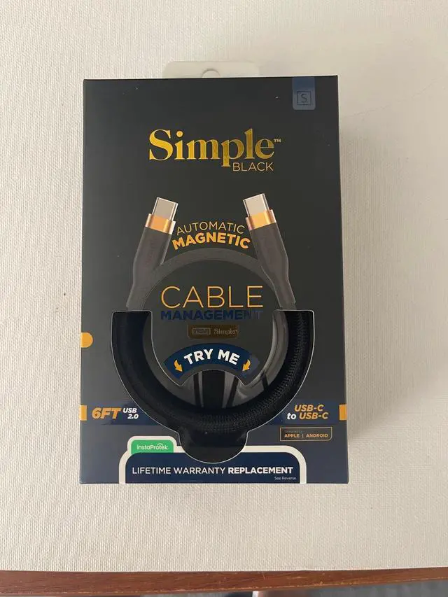 Elevate your charging and data transfer experience with this Simple Magnetic USB-C to USB-C cable. Spanning 6 feet in length, this black cable offers convenient connectivity while maintaining a clutter-free workspace. The magnetic design allows for quick, hassle-free connections - simply bring the connector close to your device's port, and it snaps into place effortlessly. Perfect for modern laptops, tablets, smartphones, and other USB-C compatible devices, this cable combines functionality with convenience. The 6-foot length provides ample reach from power outlets or computer ports, giving you the flexibility to position your devices comfortably.