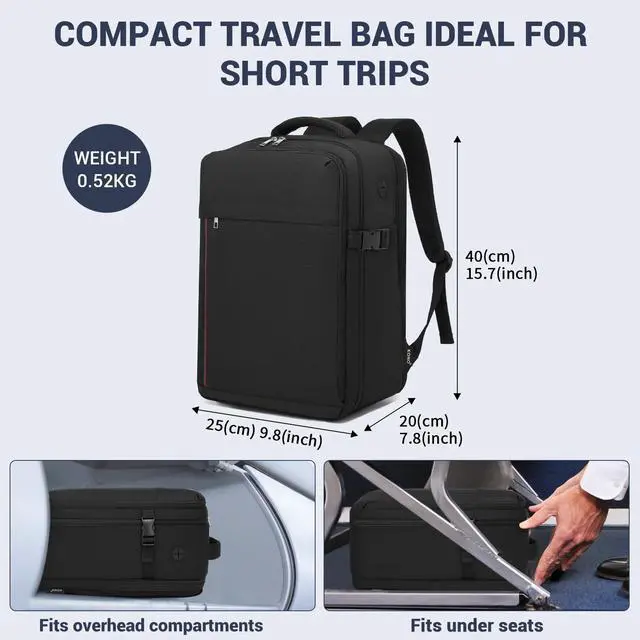 for carry-on luggage (dimensions: 40x25x20 cm, 20L). Complies with the cabin requirements of many airlines (please check the exact specifications of your airline before flying). Fits easily under the seat or in the overhead compartment. ^^ Organized packing