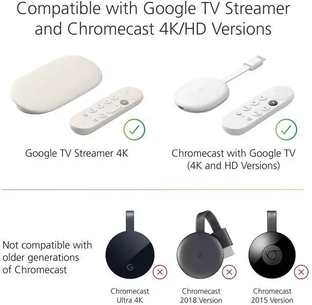 Its universally compatible, meaning you can use it with any powered USB port to enjoy 4K or HD streaming on Google TV (Streamer 4K Version) or Chromecast (4K and HD Versions). Please note that this cable is not compatible with older Chromecast models, and the Google TV (Streamer 4K Version) is sold separately.