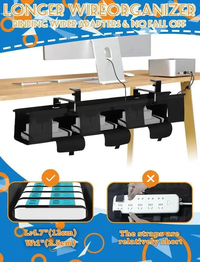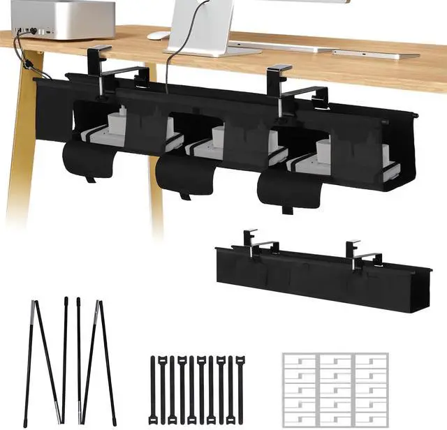 Keep your workspace tidy and organized with this premium 36-inch under-desk cable management tray by Proium. Made with durable Oxford fabric, this versatile cord organizer offers a sleek solution for managing cables and wires beneath your desk or table. The tray features both clamp, providing flexible installation without the need for drilling. With dimensions of 36 inches in length and 5.5 inches in width, it offers ample space to store and conceal various cables, power strips, and adapters. The thoughtful design allows for easy access to your cables while keeping them neatly contained and protected.