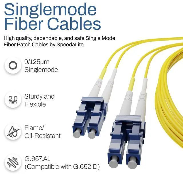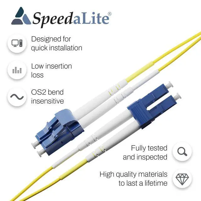 SpeedaLite Singlemode fiber optic cables are IEC-61754 and EIA/TIA 604-2 compliant for usage in high speed cabling networks. Your network will be lightning fast, without any lag time between devices. ^^ A lifetime investment in your network. With Single mode LCLC fiber, you will be able to enjoy the peace of mind that comes with knowing your singlemode lc to lc fiber patch cables will not fail you when you need them most. ^^ Singlemode lc lc, OS2 bend-insensitive jacket adds a layer of glass around the core results in a lower index of refraction.
