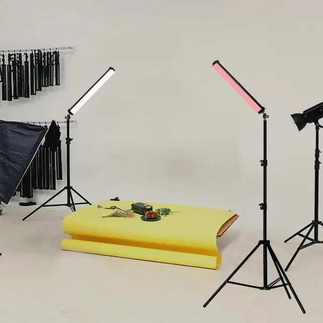 Standard Thread: The portable led light is designed with a standard 1/4" thread connection on the bottom of each side, allowing it to be used with the ball head and retractable light stand included in this kit. The ball head supports 360° rotation and the tripod is made of thickened and sturdy aluminium alloy, the base will stand stable on any flat surface and can be adjusted from 20" to 80" in height.