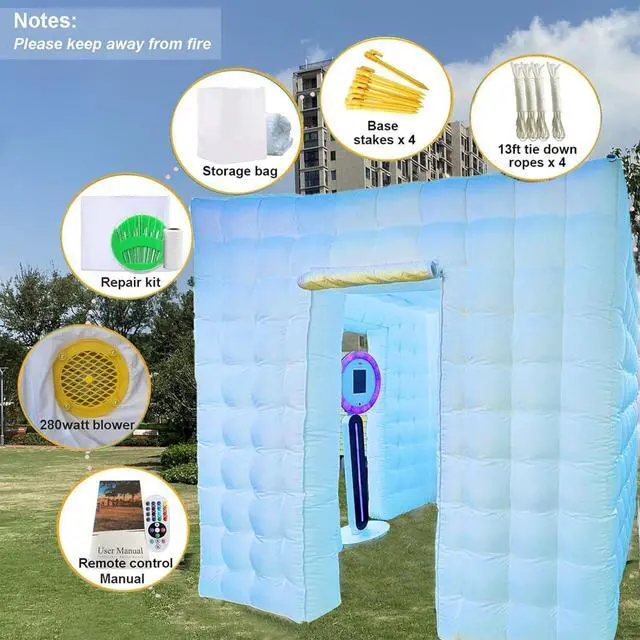 EASY USE: You can control the inflatable photo booth inner Led strip lights via 24key IR remote control. Easily select colors, change modes, adjust brightness. offer 16 different colors, you can also DIY their own unique colors to light up your life. To create a romantic, relaxed and cheerful party atmosphere, make your party up to the high peak.