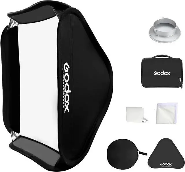KIT INCLUDES (1) 32" x32" Softbox; (1) Bowens Mount Speedring; (1) Outside diffuser; (1) Inside diffuser; (1) Carrying Case; (1) Case; (1) Mini use light. Various SituationGodox 32" x32" Softbox is Great for photography enthusiasts, novices, semi-professional and professional photographers and suitable to be used in studio portrait product video shooting, etc.