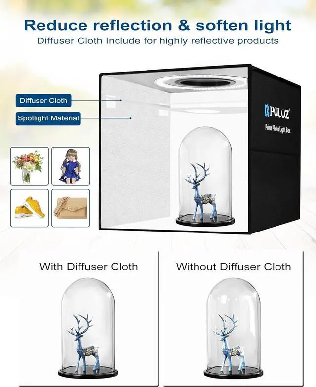 Spotlight MaterialThis photo box is made of professional grained silver film reflective fabric, which makes the light diffuse evenly and solves the problem of high reflection of the product. Not only for beginner photographers, but also for advanced photographers and professionals.