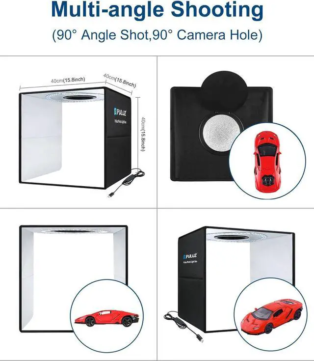 Professional Photo Studio The size of this product is 40 cm x 40 cm x 40 cm, and it has a built-in professional light source 144 LED 25lm 2835 lamp beads, which is several times brighter than a normal light box, and is stable without stroboscopic effect or flicker. By using a soft light cloth, you can make the subject look soft and make the texture stand out.
