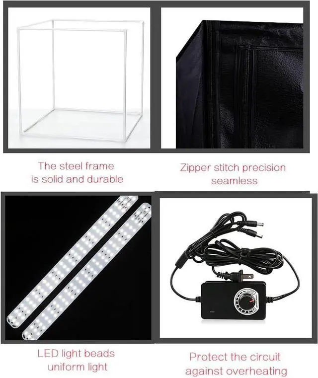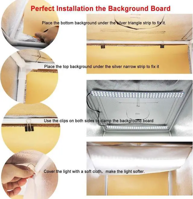 High Quality LED Light Box: The photo studio is equipped with 2x LED Beads Strips (each strip contain 96 led beads) LED Photo lights which offer the perfect amount of light for producing bright and vibrant photos. The LED Photo lights feature a color temperature of 5500k, These premium lights make it easy to take professional looking photos with a much higher quality than photos produced with neon or fluorescent lights