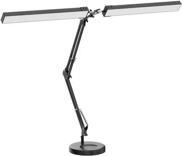 Modern Look & Space-Saving: Combining a sleek, modern appearance with functional design, this desk lamp features a double head and swing arm, providing 360° flexible adjustments. Its concealed base helps save space, making it ideal for large workstations with wide curved monitors or dual displays.