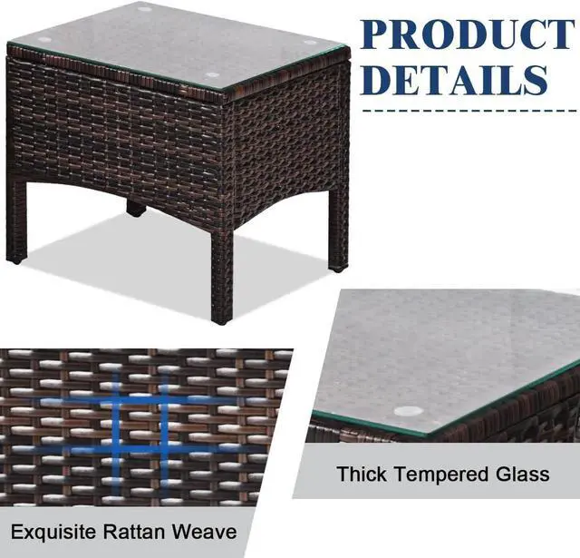 Excellent Durability & Stability: Made of high-quality PE rattan and steel, this patio furniture set has strong toughness and superior load-bearing performance, which is not easy to break after long time use. Both table and chairs are equipped with anti-skid foot mats, which enhance the overall stability while prevent scratching the floor.