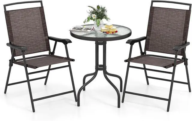 [2 Foldable Chairs]: The patio bar set also comes with 2 metal frame chairs that can be collapsed for effortless storage. Lightweight at just 8.5 lbs each and requiring no assembly, these chairs are easy to carry around and set up for immediate use.