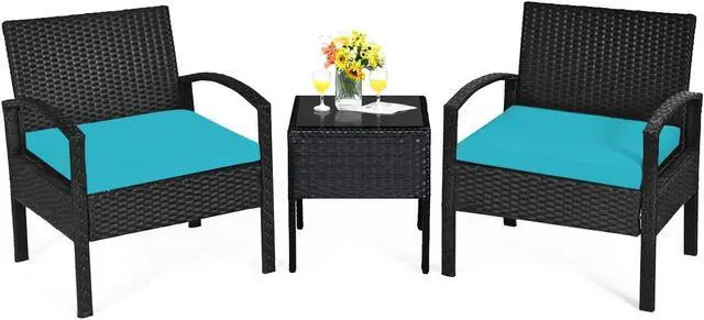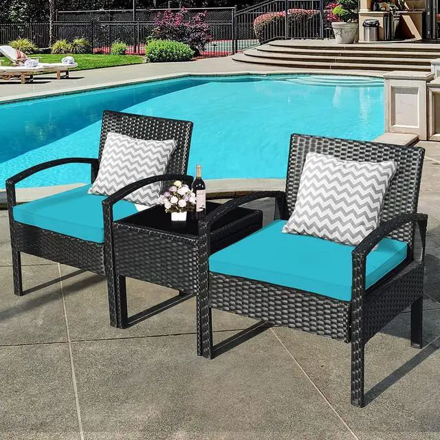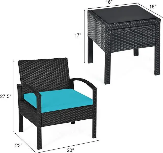 Durable Rattan & Sturdy Steel Frame: Made of high-quality PE rattan and steel, this patio conversation set has strong toughness and superior load-bearing performance, which is not easy to break after long time use. Both table and chairs are equipped with anti-skid footpads, which enhance the overall stability while not easy to scratch the floor.