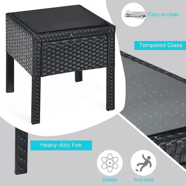 Easy to Clean: Removable zippered cushion covers facilitate daily cleaning. And the PE rattan requires low maintenance, which can restore luster after cleaning the dirt deposited on the surface with water. Besides, you can easily wipe the glass tabletop with just a damp cloth when there are stains on it.