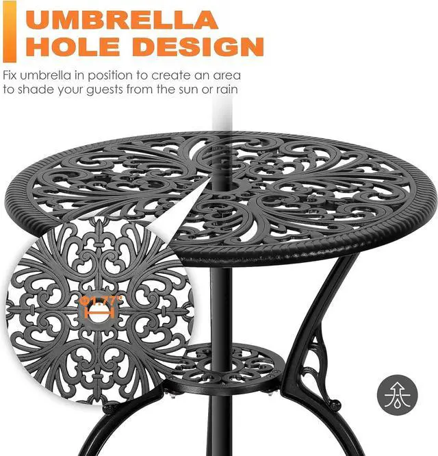 FIT AN UMBRELLA: The 1.77 inch umbrella hole of the bistro table can fit a patio umbrella (not included) for enjoying outdoor leisure time with your family or friends and protect you from the ultraviolet ray or rain