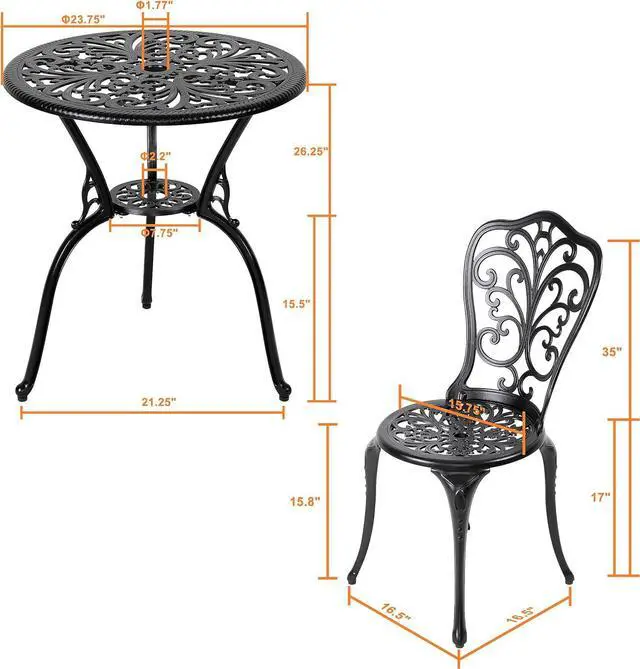 WEATHER-RESISTANT: This small bistro table set is made from sturdy and solid cast aluminum, so its resistant to rust, weather, fade, chip or crack. With durable finish and carefully made instruction, it can last season after season