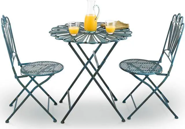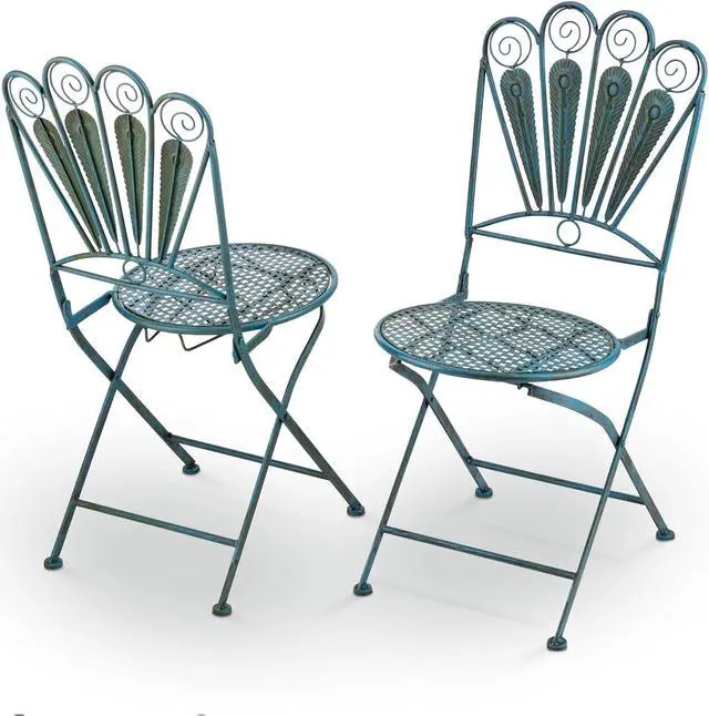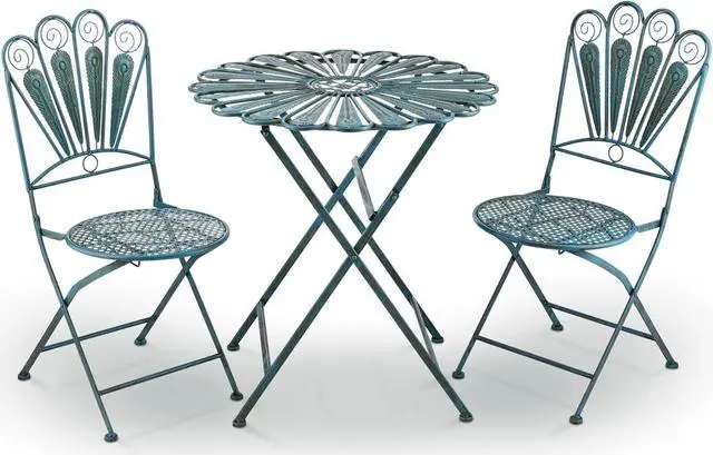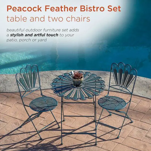 3-PIECE SET: Peacock-inspired bistro set includes round table and 2 matching chairs, perfect for your backyard, patio, deck, or garden