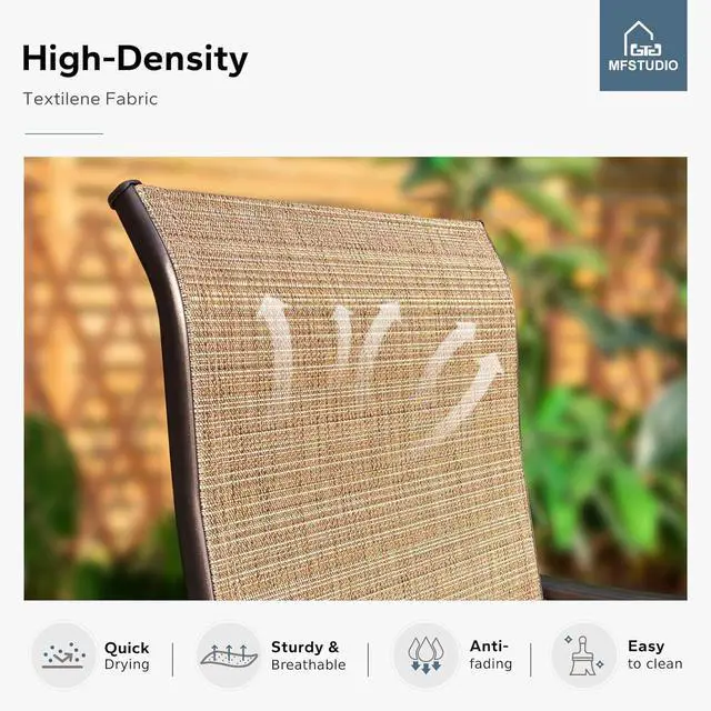 Durable Sling Fabric: Enjoy comfort with our patio bistro sets featuring a breathable sling fabric that withstands the elements, making it perfect for bar height patio sets and outdoor relaxation