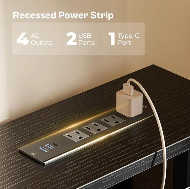 Desk with Power Outlets- Equipped with 4 standard plug outlets, 2 USB ports and 1 Type-C port, this computer desk with shelves can easily charge your phones, gaming gear and other office devices, avoiding cluttered wires.
