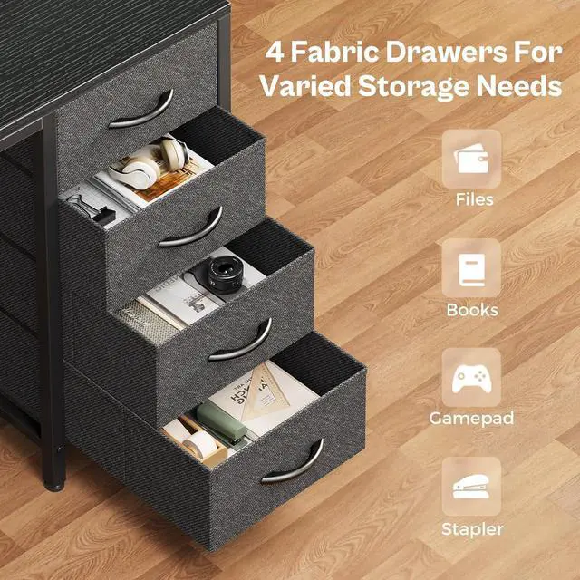 Computer Desk with Drawers- PATENT PENDING! The desk can be used as a home office desk for working from home. 4 fabric drawers help store files, stationery and other office supplies, this desk has ample storage space for you to store unlimited office supplies and documents. Super practical design!