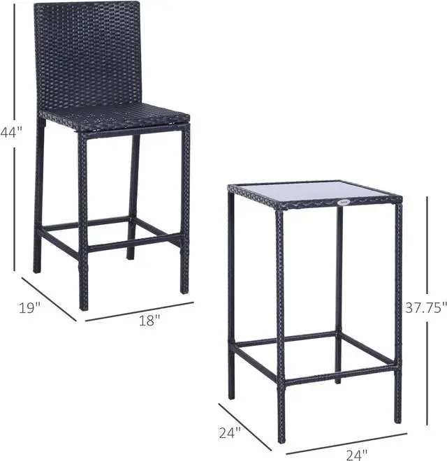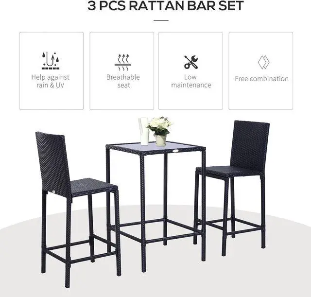 All Weather Patio Set: Our bar height patio set offers all the style of classic ratan with better resistance to water and weather. Made of hand-woven PE wicker with a strong steel frame, it' s all-weather build is meant to handle almost anything with only simple maintenance needed.