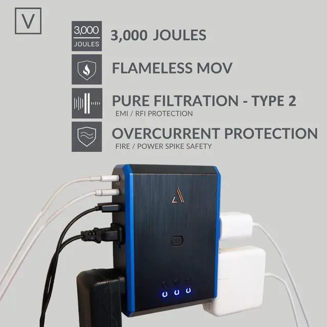 PICTURE PERFECT AUDIO/VIDEO: PureFiltration Type II Advanced EMI/RFI filtration minimize the effects of electrical line noise & insulate signals from external disturbances for clean results for electronics at a work station & home theater