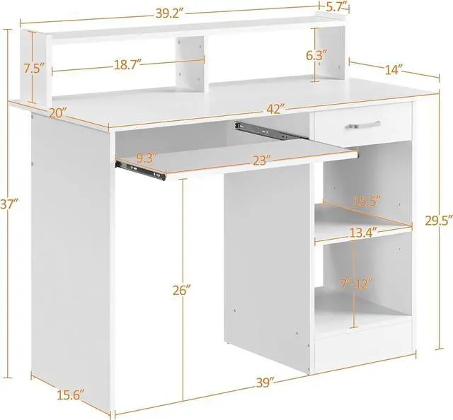 Heavy-Duty Construction: MDF wooden work desk holds a high load capacity of up to 50kg/110lb on the tabletop, 11lb in the drawer, 22lb for the compartment board and 11lb for the keyboard tray. Please avoid standing/sitting on the table for your safety concerns.