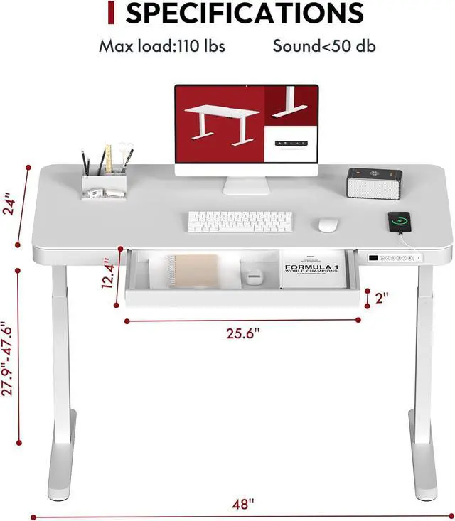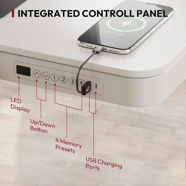 Embedded Multiple Functions: Easily save multiple with four programmable height presets, a child lock button helps prevent accidental touch. Charge up to three devices with integrated
